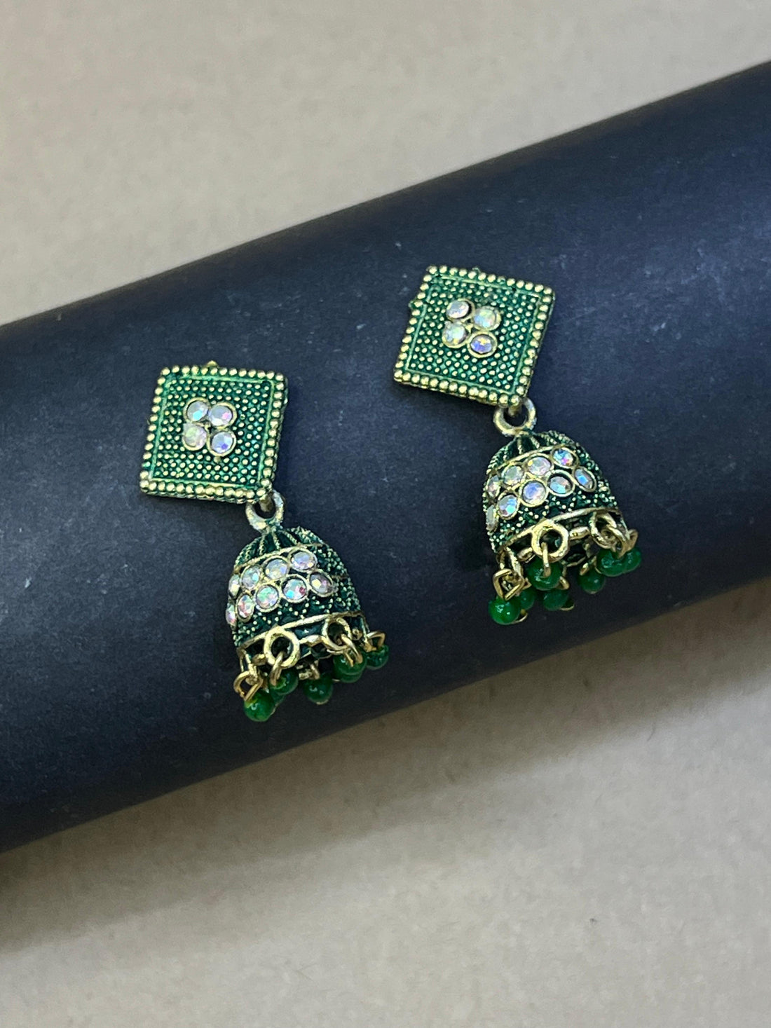 Emerald Crystal Dome Jhumka Earrings