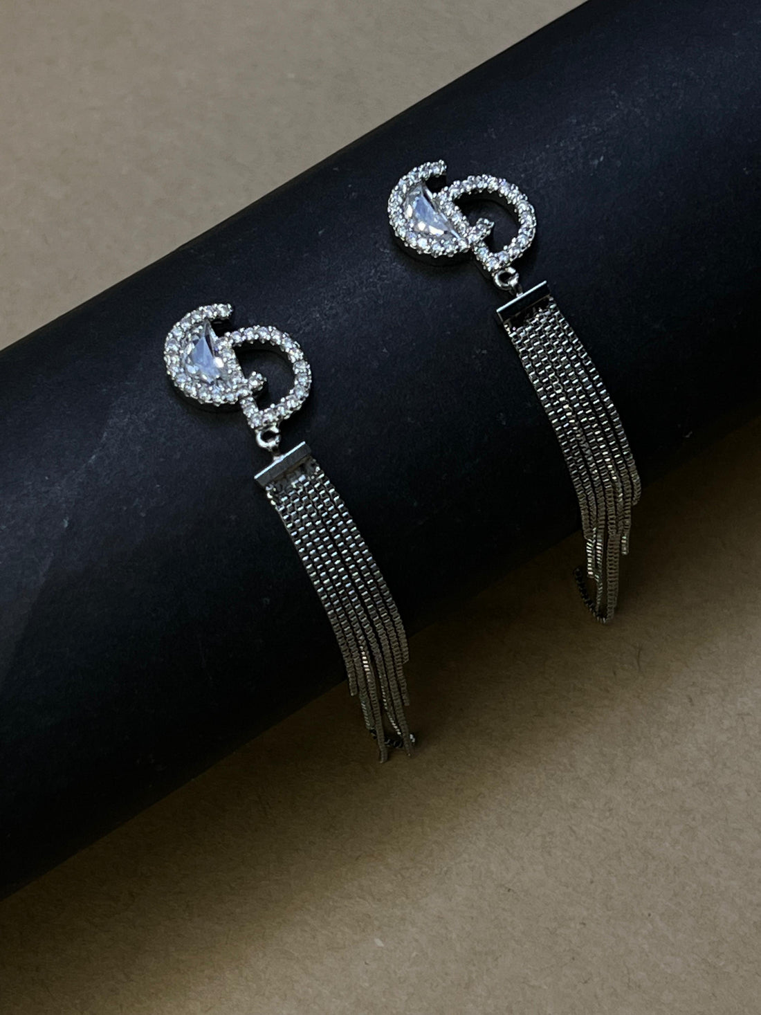 Crystal Crescent Tassel Earrings