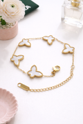 Delicate butterfly design bracelet with pearl-finish detailing.