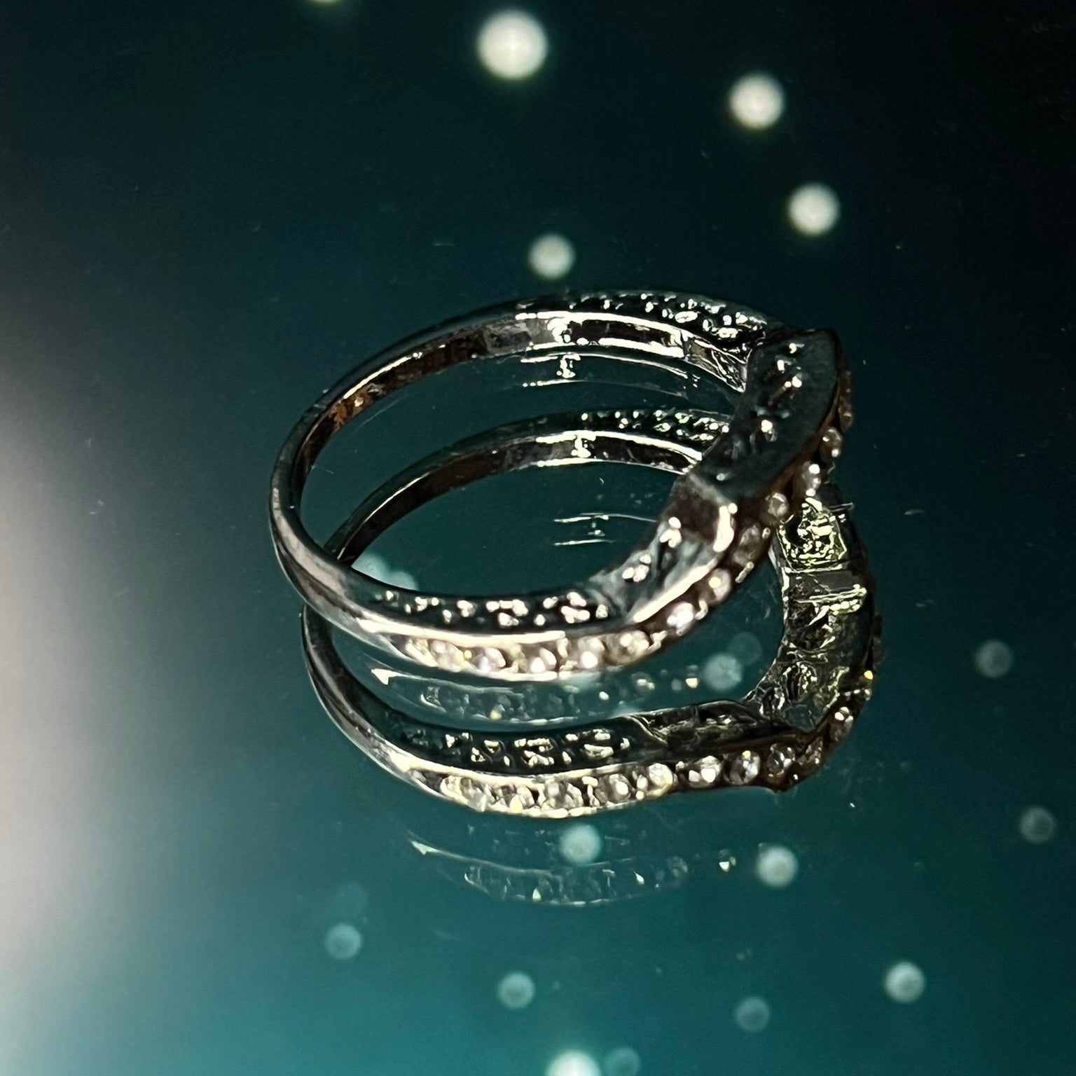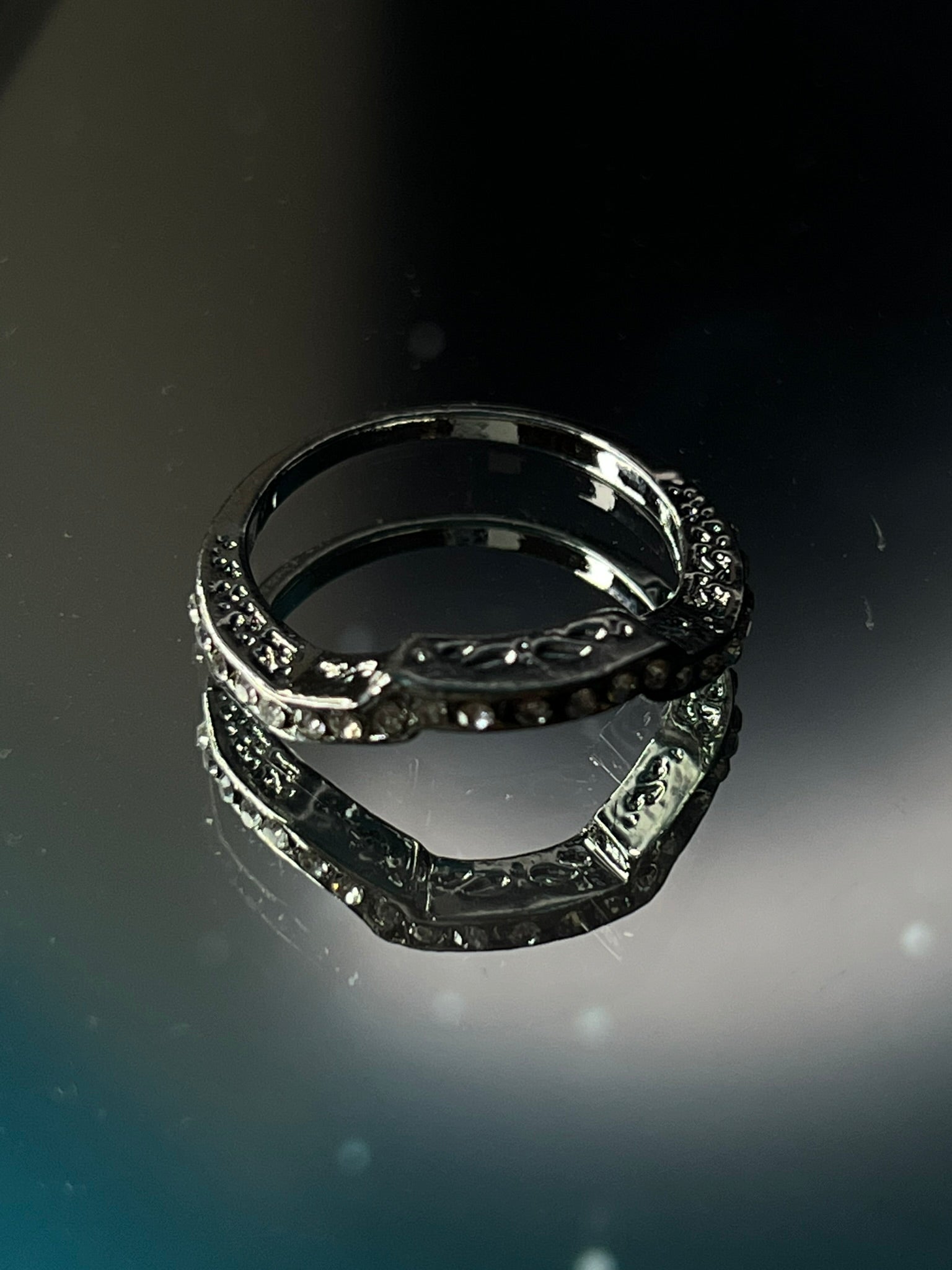 Elegant dual-band ring with sparkling crystal detailing.
