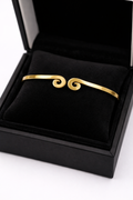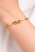 Stylish cuff bracelet featuring a modern twin spiral centerpiece design.